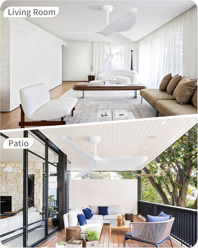 - Modern Luxury Style - Painted white finish ABS ceiling fan blades paired with 3 white downrod create a modern and luxurious ambiance for your home's rooms, such as bedrooms, farmhouses, covered patios.
