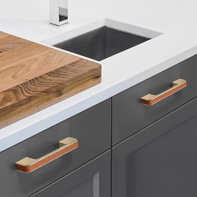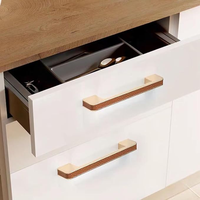 - 【Material】Genuine leather drawer handle: Made of cowhide material, soft and durable, the best choice to protect children from collisions.
