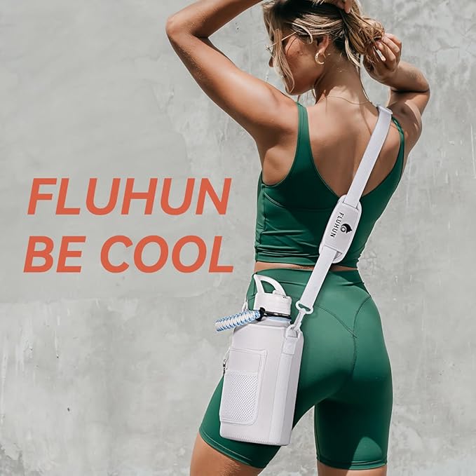 - WHAT YOU'LL GET: We offer lifetime warranty and 100% customer satisfaction against any defect or leakage. Package contains: FLUHUN 64 ounce water bottle insulated, carrying pouch, straw Lid with 2 straws, spout Lid, straw brush, paracord handle and gift box.