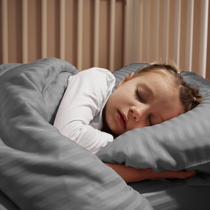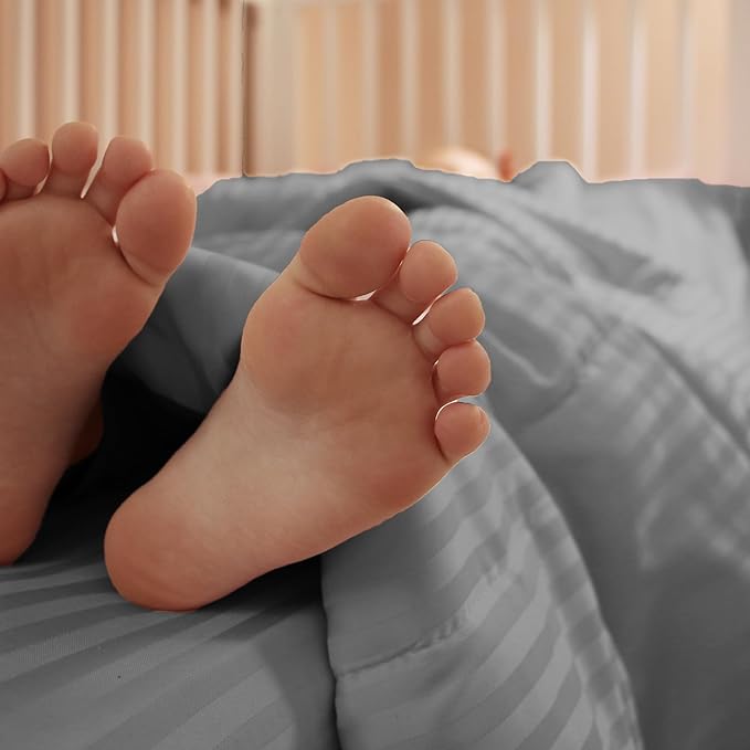 Toddler Bedding Set - 4 Piece Soft Crib Bedding Set for Boys, Includes Toddler Comforter, Flat Sheet, Fitted Sheet and Pillowcase, Grey Stripe