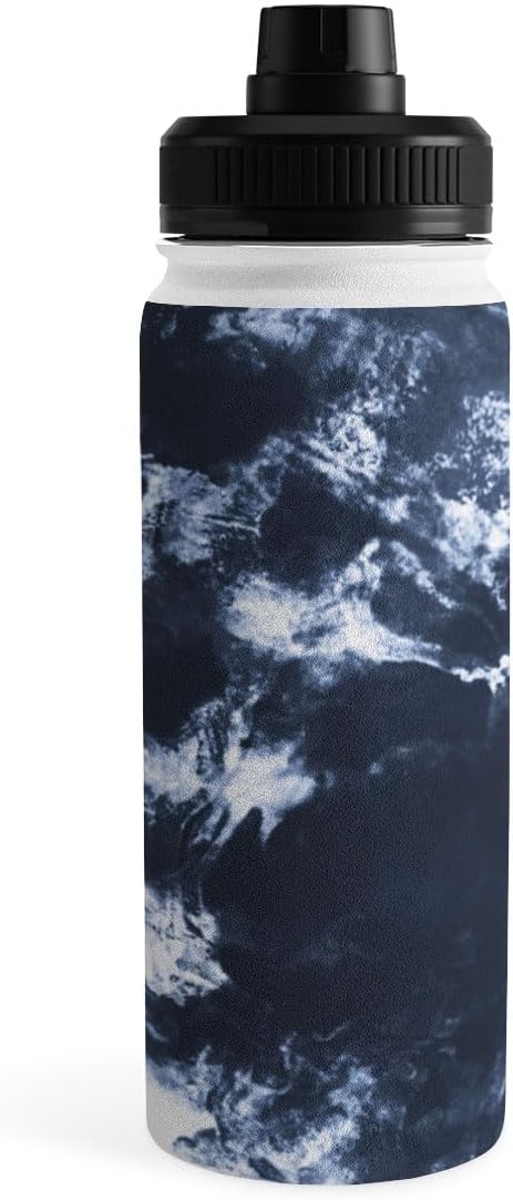 Deny Designs Water Bottle, Sport Lid 18 oz, Marta Barragan Camarasa Dark blue watercolor stains