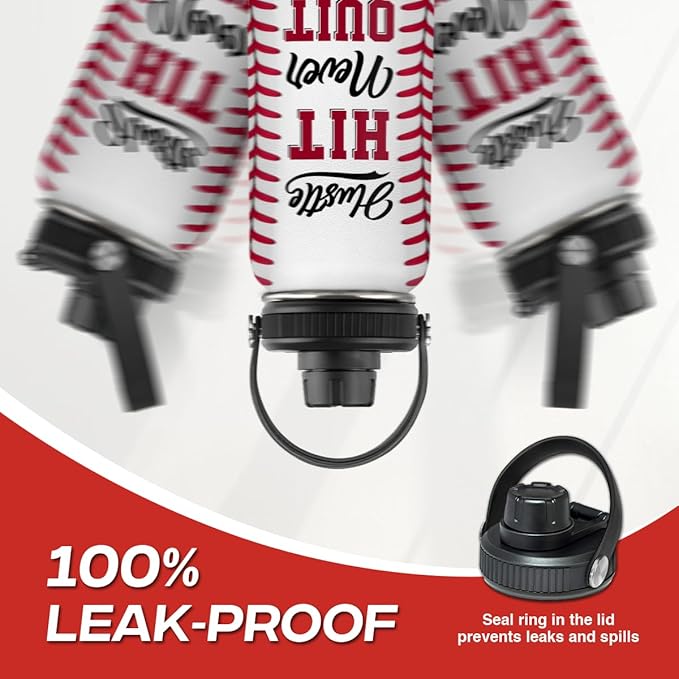 SANDJEST Baseball Water Bottle 32oz Hustle Hit Never Quit Stainless Steel Insulated Bottles for Men Women Sports Lovers Baseball Fan Players Coach Baseball Gifts for Birthday Christmas