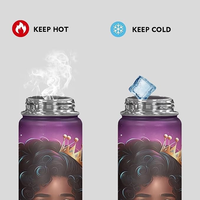 African Insulated Water Bottle 18 oz Stainless Steel Vacuum Flask with Handle Thermal Bottles Keeps Drinks Hot or Cold for Hours Lightweight Water Cup Black Queen American