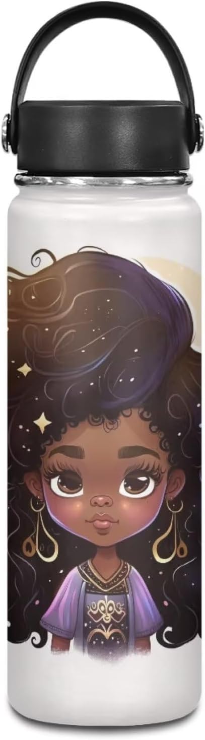 ZOUTAIRONG American Girl Insulated Water Bottle 20 oz Stainless Steel Bottle Reusable Wide Mouth Afican Water Bottle with Handle Thermal Mug Sports Water Bottles for Workout, Bike, Outdoor