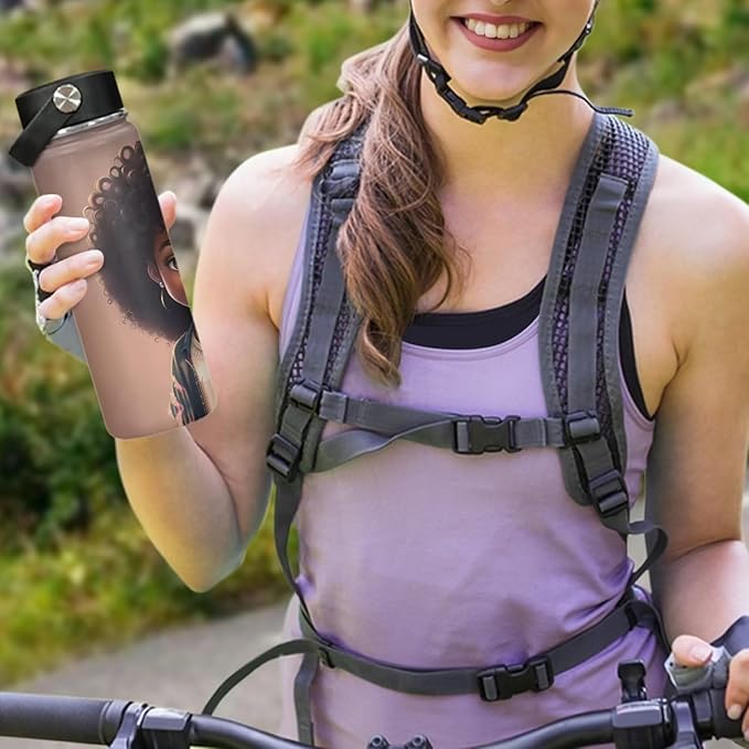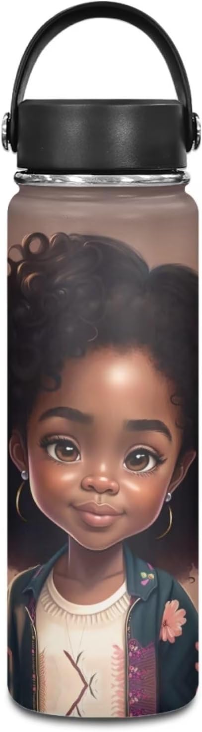 ZOUTAIRONG Magic Princess Teens Water Bottle 18 oz Insulated Water Bottle Afro American Stainless Steel Metal Flask Wide Mouth Bottle for Sports, Office, Travel Cup Keep Water Cold or Warm