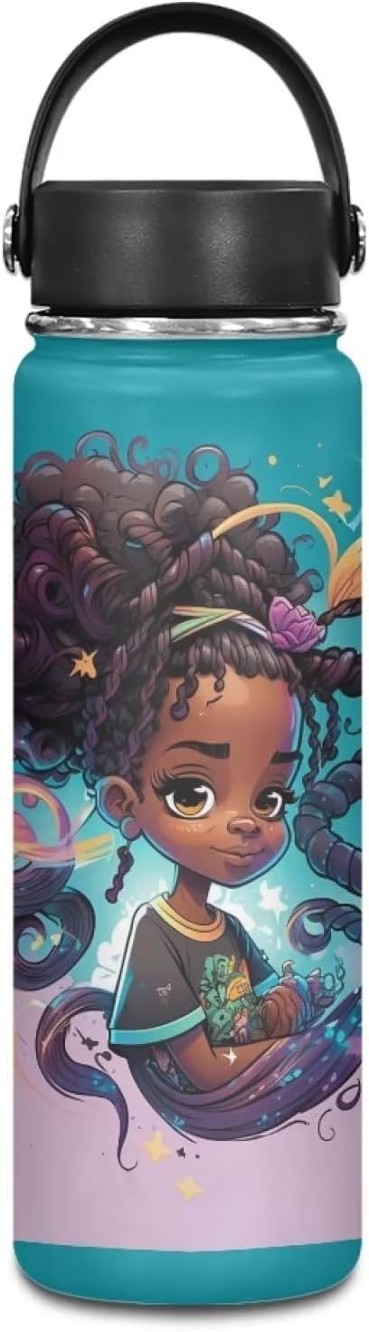 Afro American African Water Bottle 20 oz Insulated Water Bottles with Handle Flask Wide Mouth Bottle Vacuum Stainless Steel Metal Water Bottle for Sports, Gym, Office