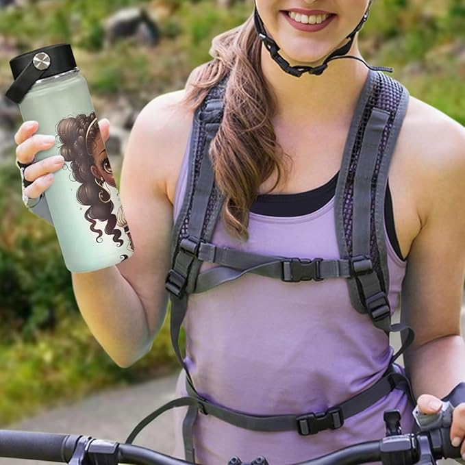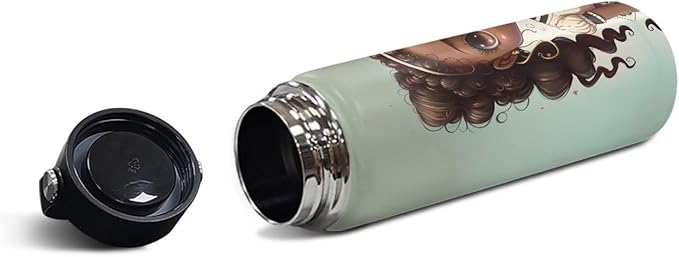 ZOUTAIRONG Black Afro Girl Insulated Water Bottle 18 oz Stainless Steel Sports Metal Water Flask African American Girls Water Cup Mug Reusable Water Bottle Jug for Daily Use, Travel, School