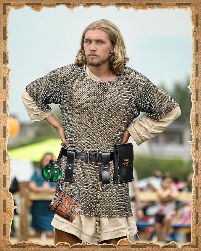 - Simple Usage: the Medieval Skirt Hike is easy to use, you only need to put the edge of your shirt or your socks between these 2 rings, then the shirt or socks will stay stable; And the medieval pouch has a large capacity, can help you store some items when you are hiking, camping or having other activities