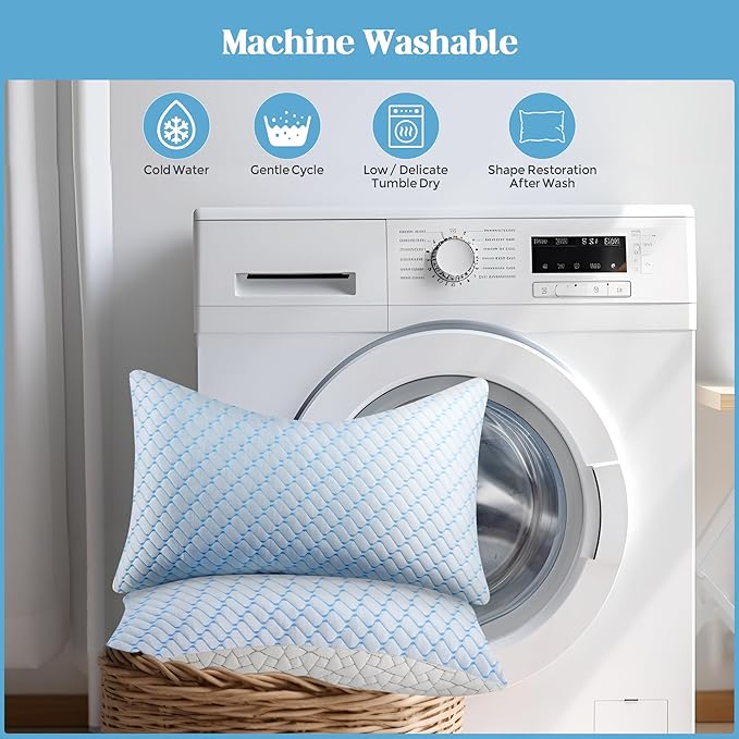 - Cooling & Double Side Pillows - Our Memory Foam Pillowcase made of cooling& material. The cooling side is made of cool ice silk fabric, great for when the weather is hot, it can keep you cool and dry all night long. and the soft side is made of 55% polyester and 45% rayon,which is breathable and soft to the touch. Double-sided design can be used interchangeably.
