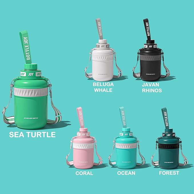 Stainless-Steel Water Bottle: Leakproof Lid, Perfect Sip, Double Insulated, Eco-Friendly, Dishwasher Safe & Stylish Strap (Sea Turtle, 48 oz)
