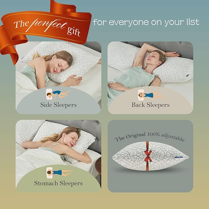 - 😴Adjustable Firmness - Unlike traditional down pillows, the shredded memory foam pillows features a YKK zippered inner and outer cover, you can ADD or REMOVE foam filling to suit your size, shape or sleep position, find the perfect comfort level and provide the ultimate sleeping experience. Perfect for side sleepers, back sleepers, stomach sleepers. Each Size Pillow comes with a FREE extra bag of fill!