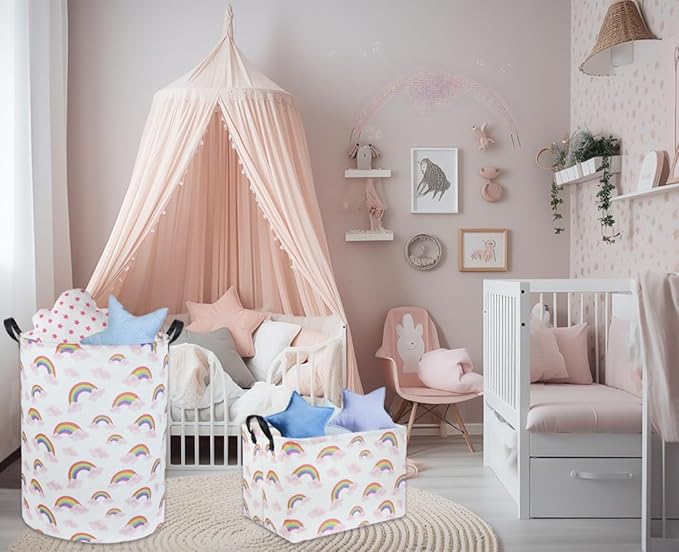 Rainbow Pink Laundry Basket Baby Girls Laundry Hamper Kids Toy Storage Basket Organizer Bins for Girls Room Decor Rainbow Gift Basket Nursery Hamper for Bedroom Bathroom (Rainbow)