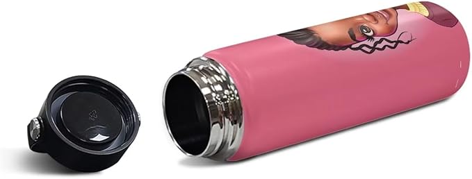 ZOUTAIRONG Black African Girl Insulated Water Bottle with Handle 18 oz Reusable Water Jug American Afro Girl Thermal Water Bottles Keeps Iced Water Cold for Hours African Sports Bottle Magic Pink