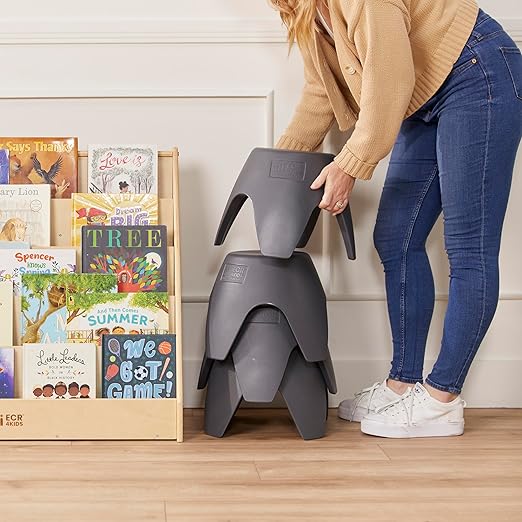 - Versatile Stools: Brighten up any space with a 4-pack of colorful plastic stools; seats are great for reading a story, playing games, or coloring in a preschool or early education space