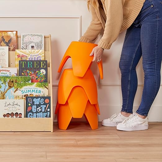 - Versatile Stools: Brighten up any space with a 4-pack of colorful plastic stools; seats are great for reading a story, playing games, or coloring in a preschool or early education space