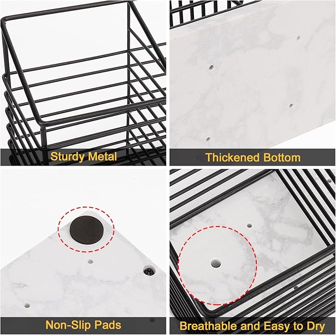 Utensil Holder for Kitchen Counter, Metal Utensil Holder Rack for Kitchen Countertop, Cooking Tools Storage for Spatula, Utensil Organizer with Sturdy Base, and Drainage Hole (Black Marble)