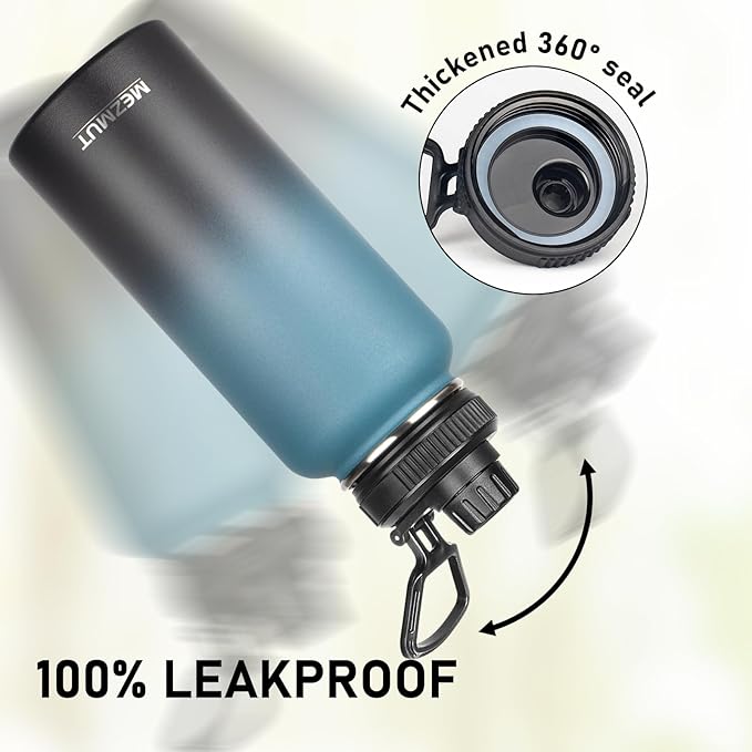 - ✨【Fulfills Your Needs】 A high quality stainless steel water bottle, 1 nozzle cap, 1 flip straw cap, 1 jug cap, 2 straws and 1 straw brush, 1 cup cleaning brush. Meet your every need, make drinking easier and more convenient. Each lid is sealable and 100% leak-proof, so you don't have to worry about getting it wet in your bag. The large opening of the stainless steel water bottles allows you to quickly fill it with ice or fruit and cleaning is easier.