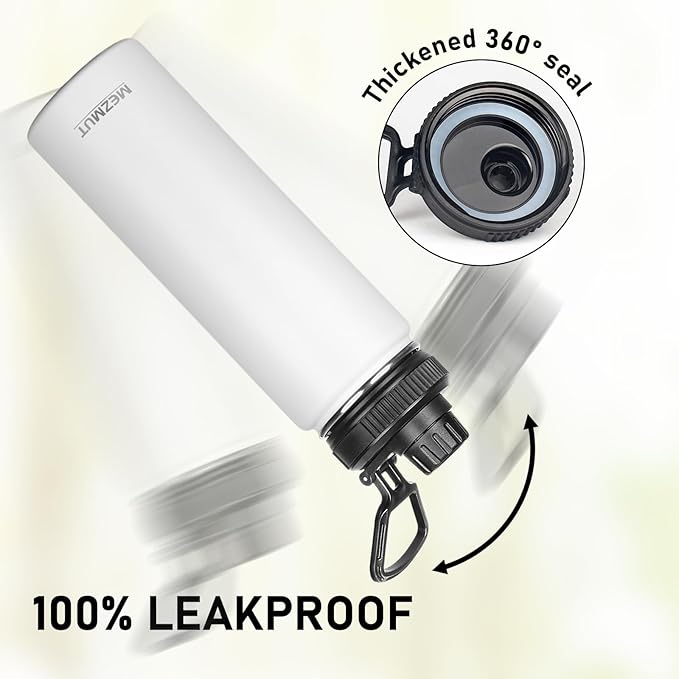 - ✨【Fulfills Your Needs】 A high quality stainless steel water bottle, 1 nozzle cap, 1 flip straw cap, 1 jug cap, 2 straws and 1 straw brush, 1 cup cleaning brush. Meet your every need, make drinking easier and more convenient. Each lid is sealable and 100% leak-proof, so you don't have to worry about getting it wet in your bag. The large opening of the stainless steel water bottles allows you to quickly fill it with ice or fruit and cleaning is easier.