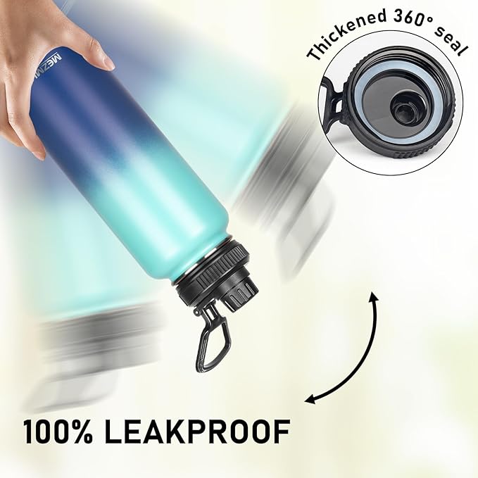 - ✨【Fulfills Your Needs】 A high quality stainless steel water bottle, 1 nozzle cap, 1 flip straw cap, 1 jug cap, 2 straws and 1 straw brush, 1 cup cleaning brush. Meet your every need, make drinking easier and more convenient. Each lid is sealable and 100% leak-proof, so you don't have to worry about getting it wet in your bag. The large opening of the stainless steel water bottles allows you to quickly fill it with ice or fruit and cleaning is easier.