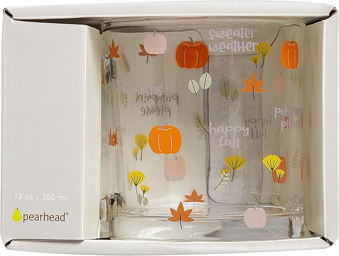 Pearhead Glass Harvest Mug, Halloween Home Décor, Coffee And Tea Glass Mug, Fall Drinkware Accessories, Seasonal Mug, 12 oz.