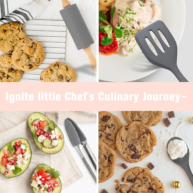 - FUN AND ENGAGING: This 23-piece children's cooking tool set comes with a wooden storage box, assorted kitchen utensils, aprons, and molds to safely introduce kids to food prep.