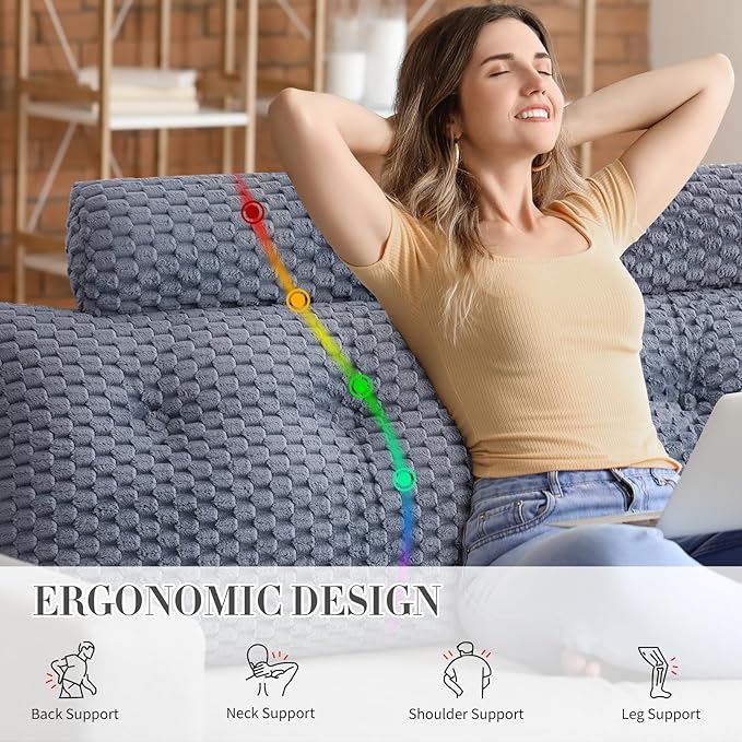 - [MULTIPURPOSE AND OCCASSIONS] - The bed wedge pillow is perfect for a variety of occasions.Whether it's on a bed, daybed or floor, this pillow provides functional support for ultimate relaxation while watching TV, working on your laptop, or playing games. It's also a must-have for dorms and bedrooms, serving as both a decorative and comfortable addition to any space.