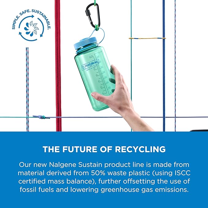 - THE FUTURE OF RECYCLING: Our Nalgene Sustain product line is made from material derived from 50% waste plastic (using ISCC certified mass balance), further offsetting the use of fossil fuels and lowering greenhouse gas emissions