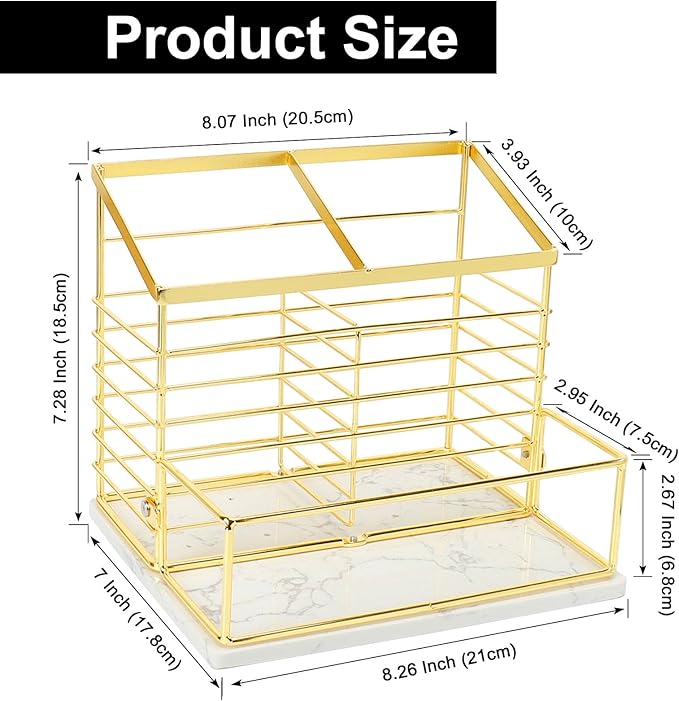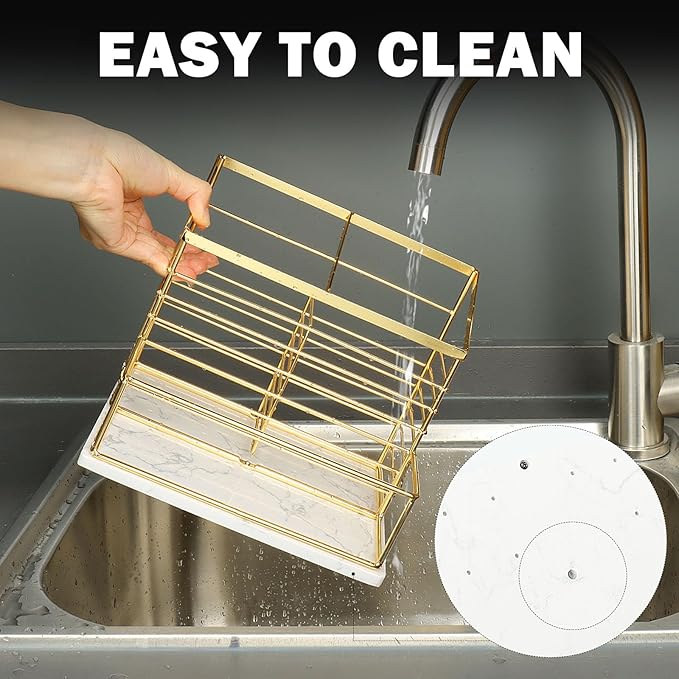 Utensil Holder for Kitchen Counter, Metal Utensil Holder Rack with Salt and Pepper Shakers for Kitchen Countertop, Cooking Tools Storage for Spatula, Large Utensil Organizer with Marble Base