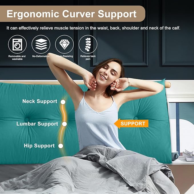 - MULTIFUNCTIONAL APPLICATION: There is one side pocket of the headboard wedge, which can be used to put remote control mobile phones and other items. Our long backrest support bolster cushion not only decorate the bed and act as a headboard, but also fill in the gaps and keep items from falling out. You can use it as a support bolster cushion, which provide back support for your family when reading, playing games, and taking a nap. It's also popular in college dorm beds.