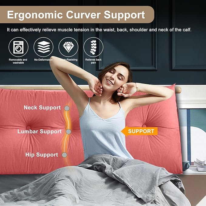 - MULTIFUNCTIONAL APPLICATION: There is one side pocket of the headboard wedge, which can be used to put remote control mobile phones and other items. Our long backrest support bolster cushion not only decorate the bed and act as a headboard, but also fill in the gaps and keep items from falling out. You can use it as a support bolster cushion, which provide back support for your family when reading, playing games, and taking a nap. It's also popular in college dorm beds.