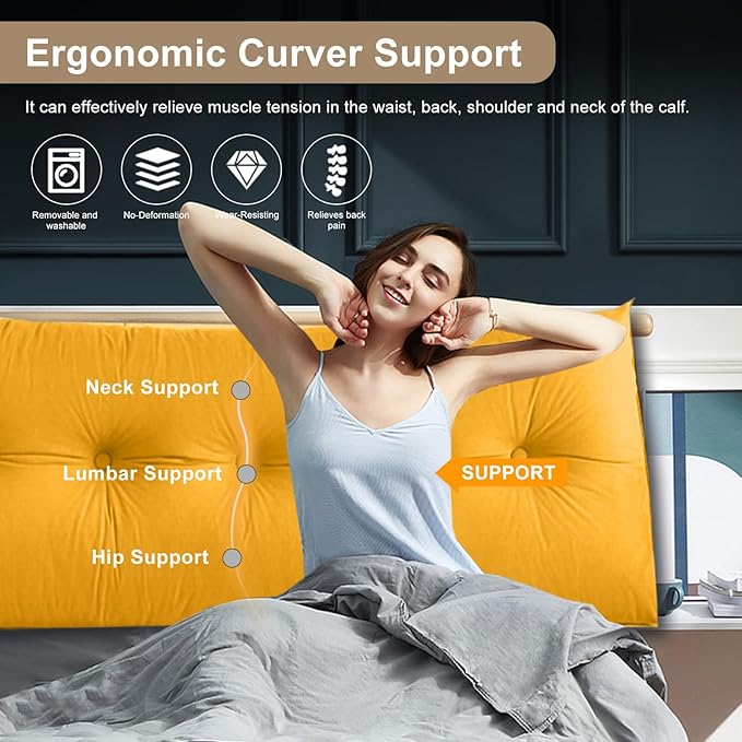 - MULTIFUNCTIONAL APPLICATION: There is one side pocket of the headboard wedge, which can be used to put remote control mobile phones and other items. Our long backrest support bolster cushion not only decorate the bed and act as a headboard, but also fill in the gaps and keep items from falling out. You can use it as a support bolster cushion, which provide back support for your family when reading, playing games, and taking a nap. It's also popular in college dorm beds.
