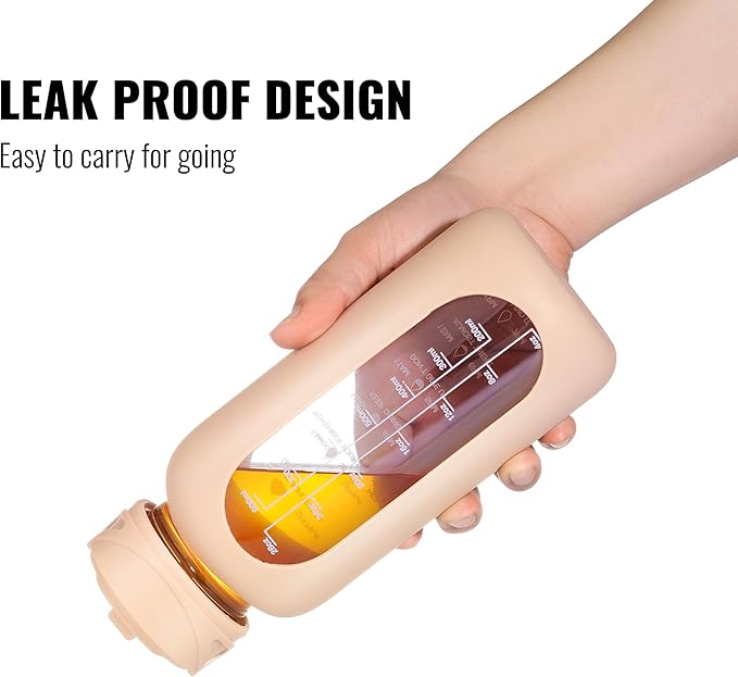 - TRACK HYDRATION AND TIME MARKER DESIGN: The glass water bottle comes with time markers and exact volume on the side, monitor your daily hydrated intake and stay on track meet your health and fitness goals, nudge you getting into healthy habit of drinking water