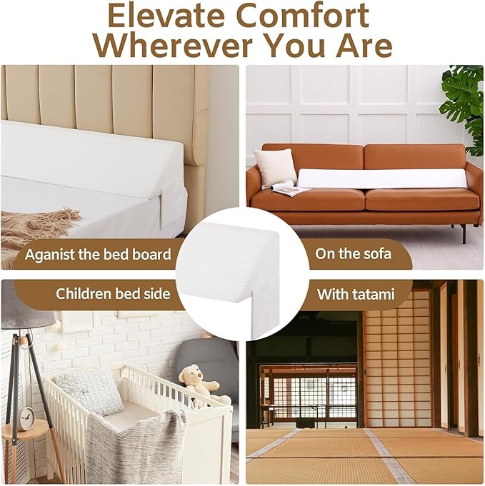 Queen Bed Wedge Pillow for Headboard, Foam Headboard Pillow, Bed Gap Filler, Mattress Wedge, Mattress Gap Filler Queen - Fill The Gap (0-7") Between Headboard and Mattress (White, 60"x10"x6")