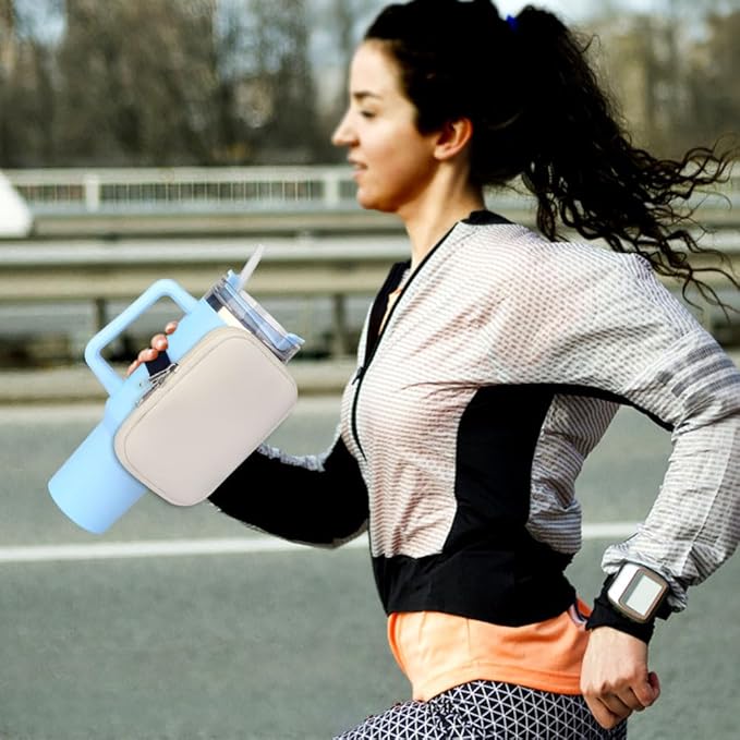 1 Pack Water Bottle Pouch Fit for Stanley Quencher Adventure 40oz Tumbler, Gym Water Bottle Pouch Running Water Bottle Handheld Caddy Compatible with Stanley Tumbler - Beige
