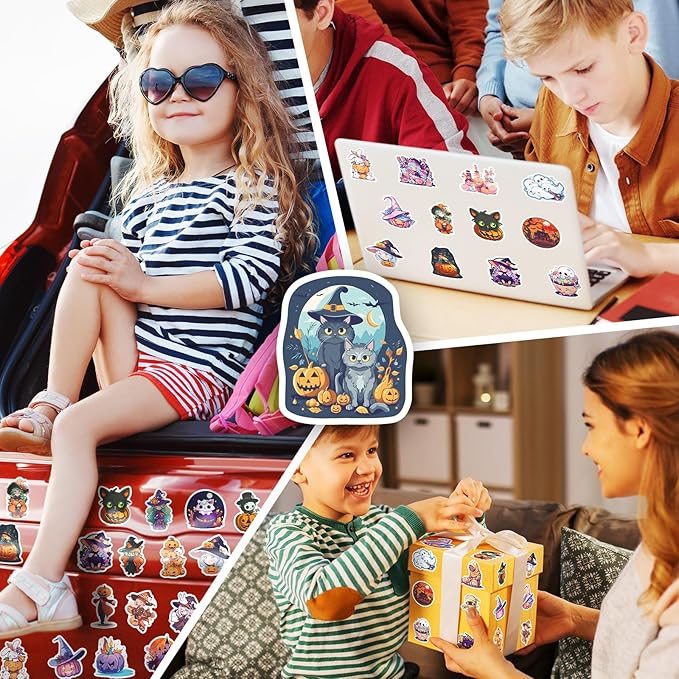 - 💐Easy to use Halloween stickers: Halloween Decorations Stickers are super cute decorative items that are easy to stick, simply peel and stick, can be stuck multiple times, and will not leave residue when you remove them.Our stickers are made of high quality vinyl, safe and non-toxic, strong and durable adhesion, wrinkle resistance, waterproof and sun protection, smooth surface with bright colors.