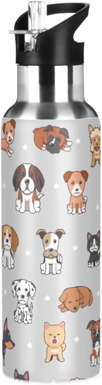 Cute Dog Stainless Steel Water Bottle with Straw Lid - 20 Oz Sports Insulated Water Bottle Thermos for Sport Gym Outdoor Travel School