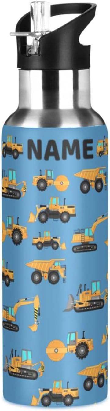 Excavator Concrete Mixer Stainless Steel Water Bottle with Straw Lid - 20 Oz Sports Insulated Water Bottle Thermos for Sport Gym Outdoor Travel School
