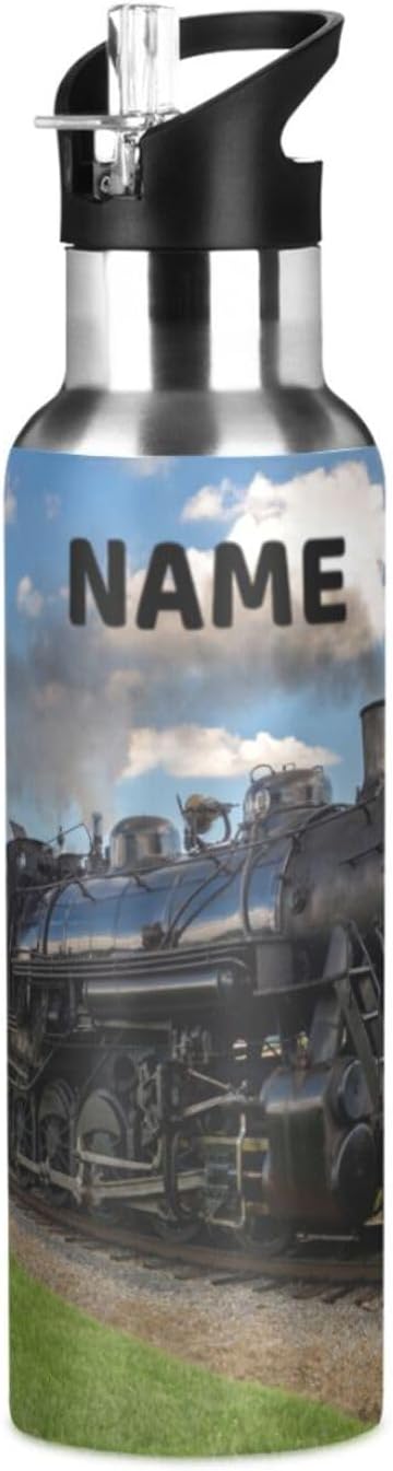 Vintage Steam Train Stainless Steel Water Bottle with Straw Lid - 20 Oz Sports Insulated Water Bottle Thermos for Sport Gym Outdoor Travel School