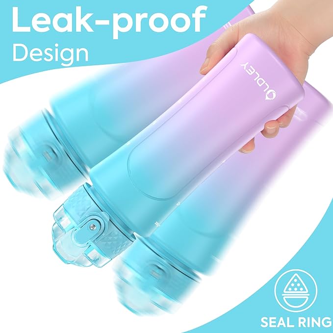 OLDLEY Kids Water Bottle with Straw 15 oz BPA-Free Leak-Proof Motivational Water Bottles with Time Marker for School Sports Travel Gym, Easy to Use for Girls Goys, 1 Straw Lid, Blue Purple