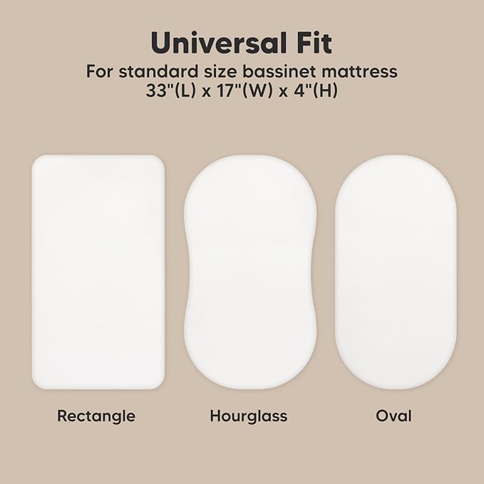 - 2-Pack Bassinet Fitted Sheets - KeaBabies Soothe Bassinet Mattress Sheets, sized at 33" x 17" with a depth of up to 4", provide a universal fit for all bassinet mattress pad types. They can be used as hourglass, oval, rectangle bassinet sheets.