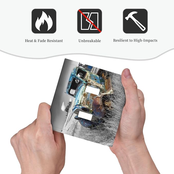 Vintage Country Old Blue Truck Double Toggle Light Switch Cover Decorative Rustic Automobile 2 Gang Wall Plate Electrical Faceplate Switchplate for Bathroom Bedroom Living Room Decor