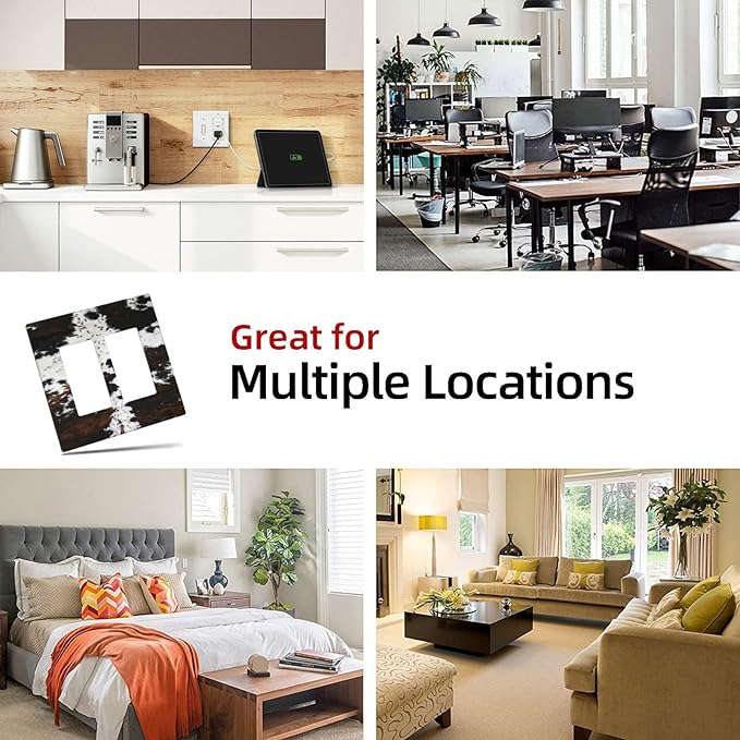 Western Farm Highland Cow Cowhide 2 Gang Rocker Decora Light Switch Cover Decorative Outlet Covers Wall Plate Electrical Faceplate Switchcovers GFCI for Farmhouse Bathroom Bedroom Living Room Decor