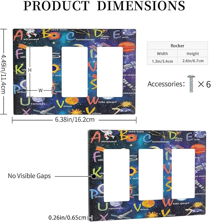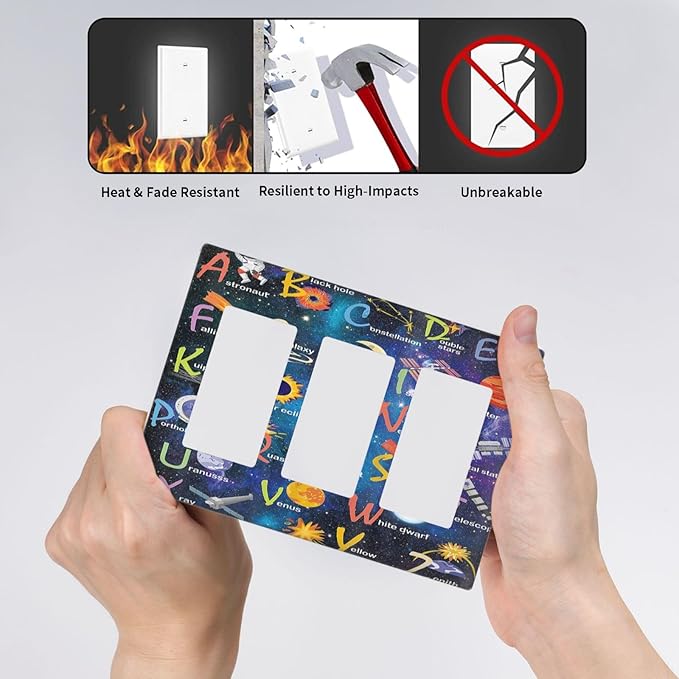 ABC Outer Space 3 Gang Rocker Light Switch Plate Alphabet Galaxy Educational Triple Decora Outlet Wall Plate Cover Faceplate Decorative Switchcovers GFCI for Kidroom Nursery Living Room Boyroom Decor
