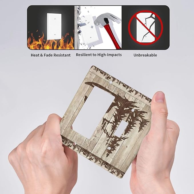 Rustic Wood Bear Forest 2 Gang Single Toggle Rocker Combination Light Switch Cover Vintage Antique Cabin Decorative Wall Plate Cover Electrical Faceplate for Farmhouse Bathroom Bedroom Kitchen Decor