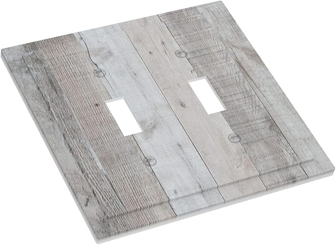 Rustic Grey Wood Shiplap Double Toggle Light Switch Cover Decorative Vintage Country 2 Gang Wall Plate Electrical Faceplate Switchplate for Farmhouse Bathroom Bedroom Livingroom Kitchen Decor