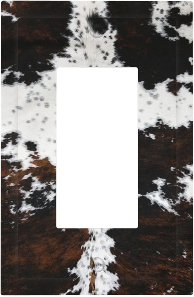 Western Farm Highland Cow Cowhide 1 Gang Rocker Light Switch Plate Single Decora Outlet Wall Plate Cover Faceplate Decorative Switchplate GFCI for Farmhouse Bathroom Living Room Bedroom Decorate