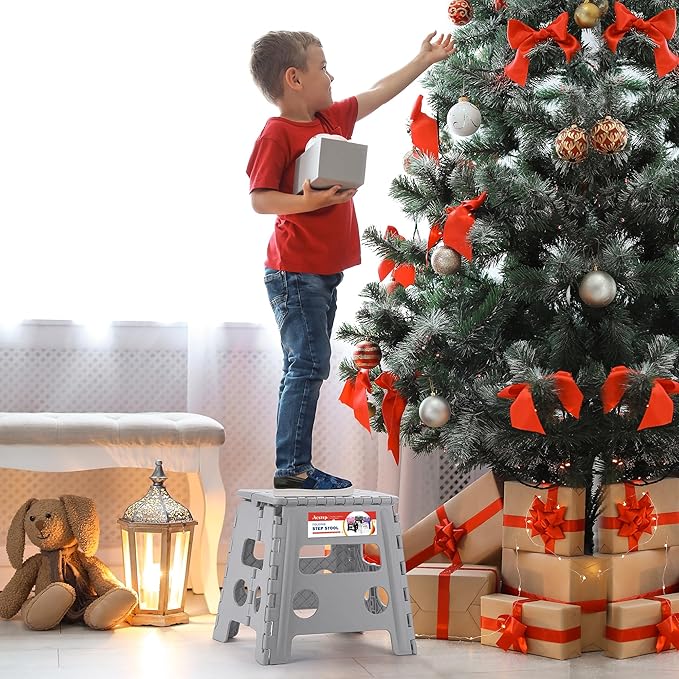 ACSTEP Folding Step Stool 13'' Foldable Step Stool for Kids and Adults Up to 300 lbs, Non-Slip Folding Stools with Portable Handle for Bedroom Kitchen, Bathroom Grey