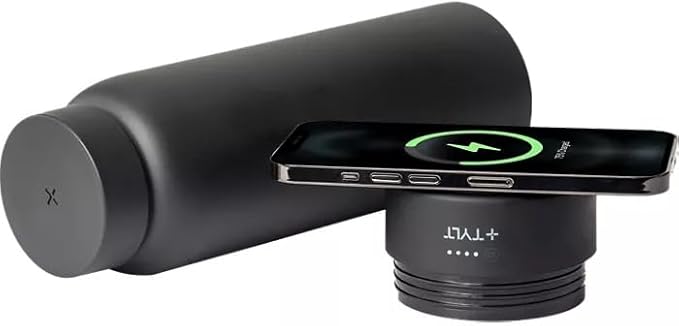 TYLT Power Bottle 2.0, All-In-One 24 oz Stainless Steel Wide Mouth Water Bottle & Removable 5700 MAH Portable Power Bank, Dishwasher Safe, Cup Holder Compatible, Lanyard Handle, Black