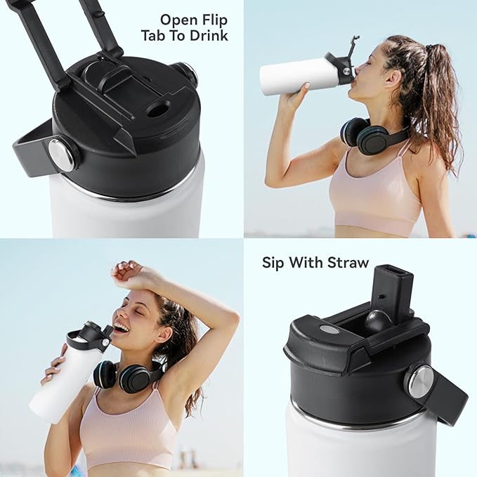 Kerilyn Stainless Steel Insulated Water Bottle, 18oz Double Wall Vacuum Insulated Water Bottle Leak Proof with Silicone Straw, Wide Mouth Lid, BPA Free, Keep Cold and Hot, 18oz, White