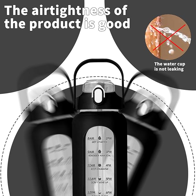 - 【Material Design】These 64oz glass water bottles, designed for Water Bottles category, are made of high-quality borosilicate glass. They are BPA-free, dishwasher safe, and come with detachable straw, a leakproof lid with handle, a fashionable silicone sleeve, and a convenient cup brush for easy cleaning